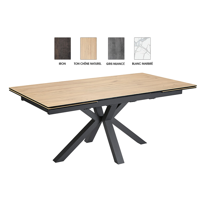 Plateau avec 2 allonges en bout escamotables de 50 cm en céramique ou avec 1 allonge centrale système auto-levant de 60 cm